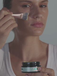 Volcanica ist mehr als nur eine Tonmaske. Das Produkt besteht aus einer Kombination hochwertiger Tone (Bentonit + Schluff), und die hydroglyzerinbasierte Formulierung macht Volcanica cremiger und deutlich weniger austrocknend als klassische Tonmasken. Die cremige Textur mit relativ niedriger Viskosität reinigt die Poren und beruhigt entzündete Haut, während sie die Barrierefunktion bewahrt und das übliche Austrocknen und Spannen vermeidet.