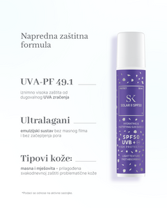 Skintegra Solar II SPF50 je hidratizirajući i matirajući fluid za kožu lica koji pruža vrlo visoku UV zaštitu širokog spektra (UVA + UVB).