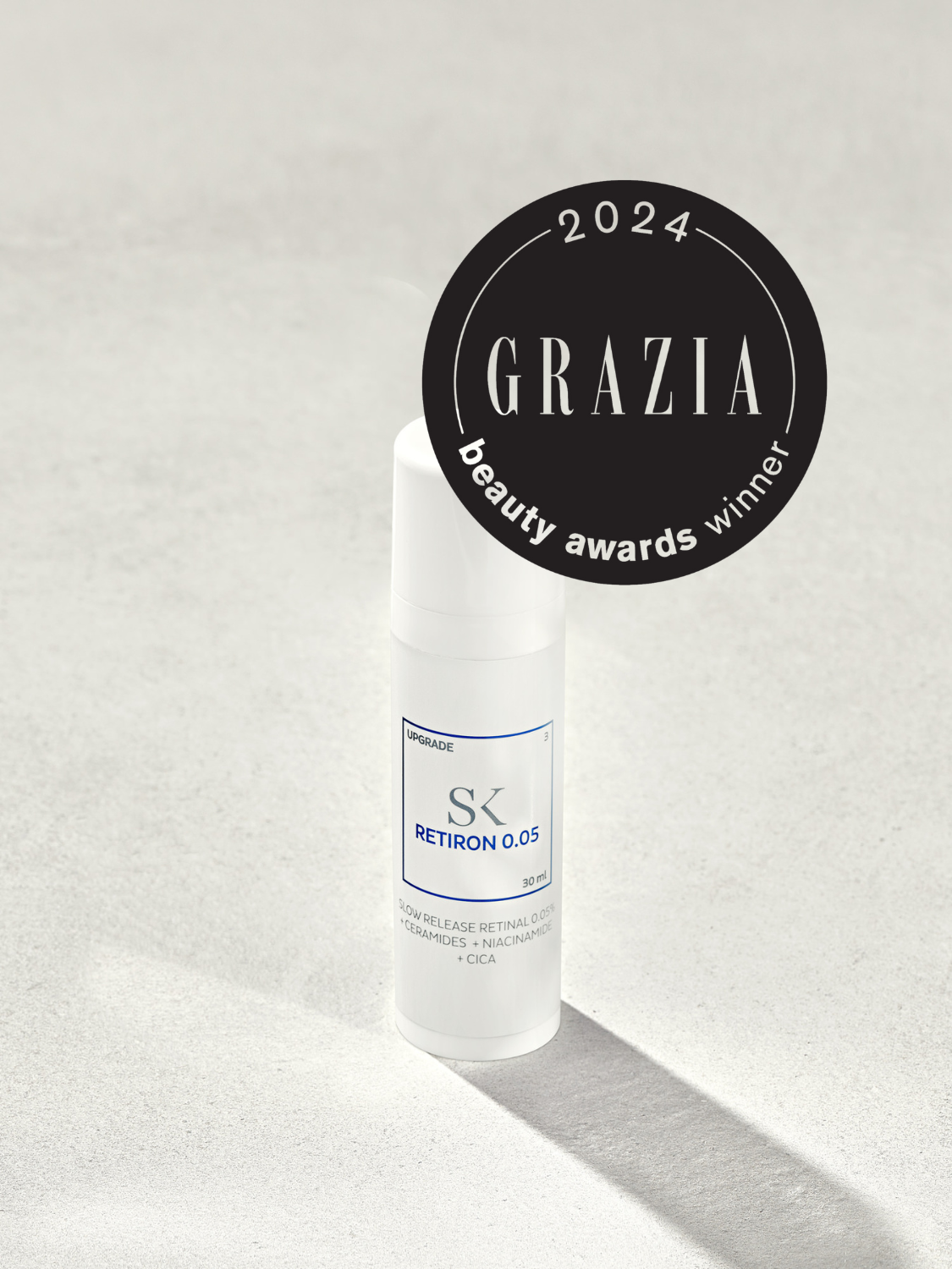 Skintegra Retiron 0.05 is a serum emulsion based on 0.05% encapsulated retinal, fortified with niacinamide, three essential ceramides and their precursors, antioxidants, panthenol and madecasoside.