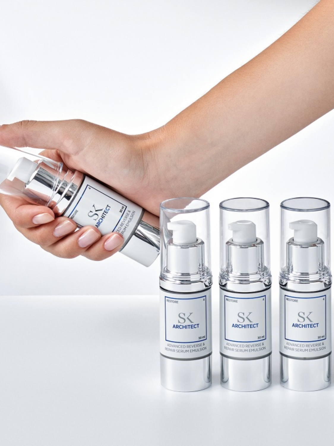 Skintegra Architect je intenzivna serumska emulzija za vse tipe kože s trojno učinkovitostjo – zasnovana je za kožo, nagnjeno k nepravilnostim, z vidnimi poškodbami UV-žarkov (kot je hiperpigmentacija), deluje pa tudi proti staranju. S svojo nežno, lahko in nemastno teksturo se ta emulzija z nevtralnim vonjem zlahka vpije v kožo, ki po uporabi postane svilnato gladka.